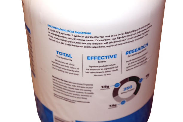 Signature 100% Whey Protein combines three different sources of whey protein in one powerful blend: whey protein concentrate, whey protein isolate, and hydrolyzed whey protein. Whey protein is the most important weapon in your muscle-building arsenal. It promotes muscle growth, counteracts muscle breakdown, and supports your workout recovery.*